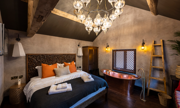 Each two-storey cottage has an open-plan living area downstairs with lounge and dining spaces. A spiral staircase leads to two bedrooms, one with a king-size bed and the other with two singles. The double room features a gorgeous free-standing roll-top bath for you to relax in pure luxury!